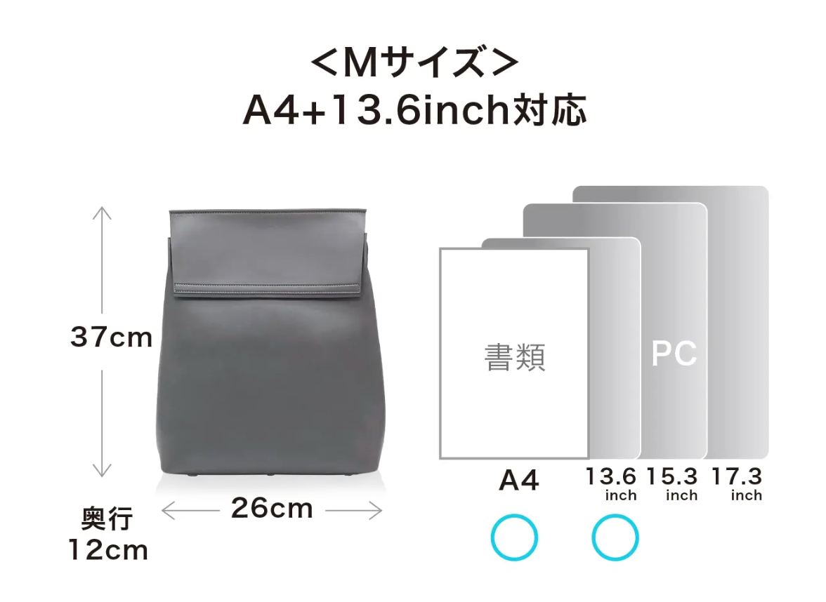 - Mサイズ: PCや書類をしっかり持ち歩く標準サイズ。