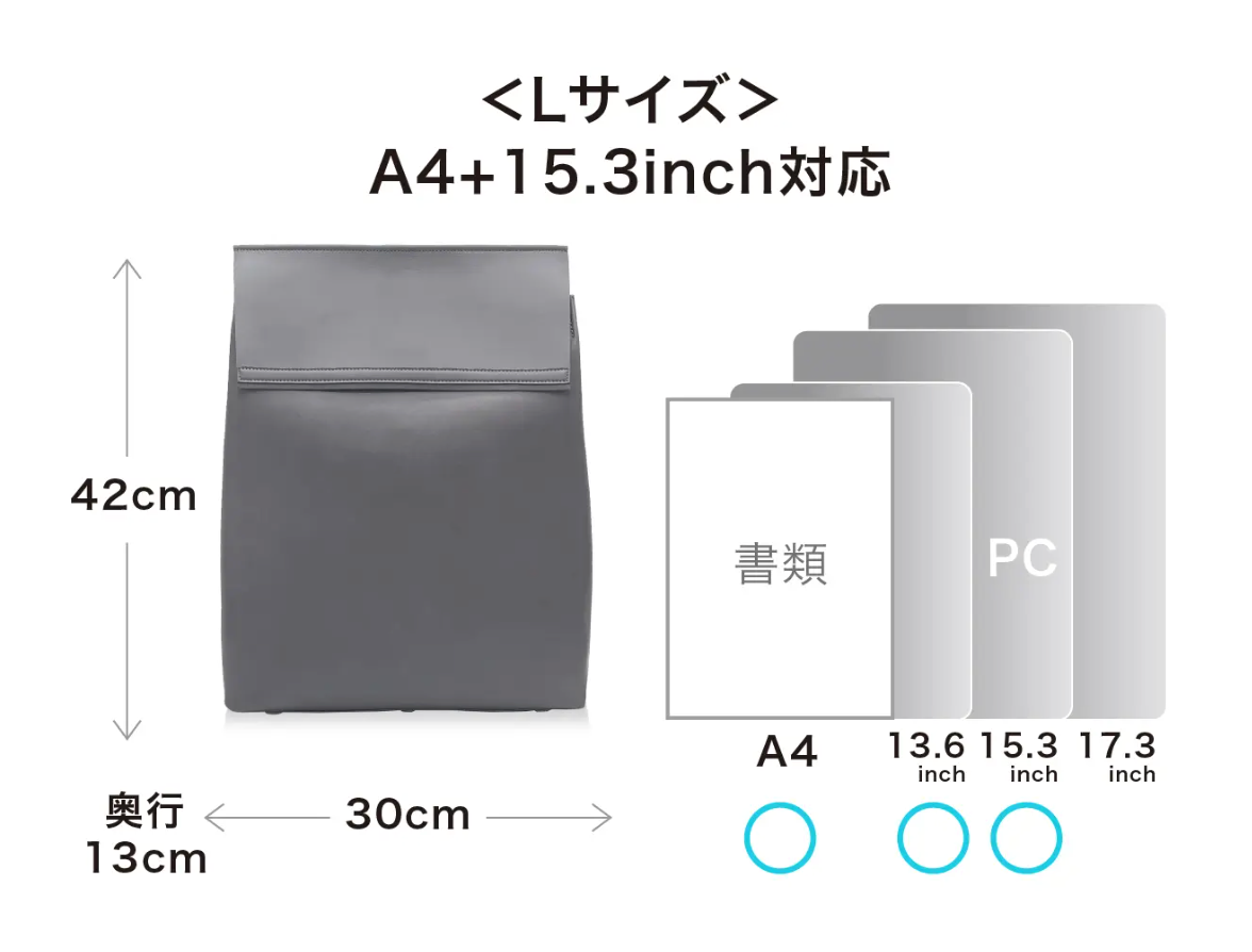Lサイズ:15.3インチPC(W34.04cm x H23.76cm x D1.15cm)収納可 - 重量