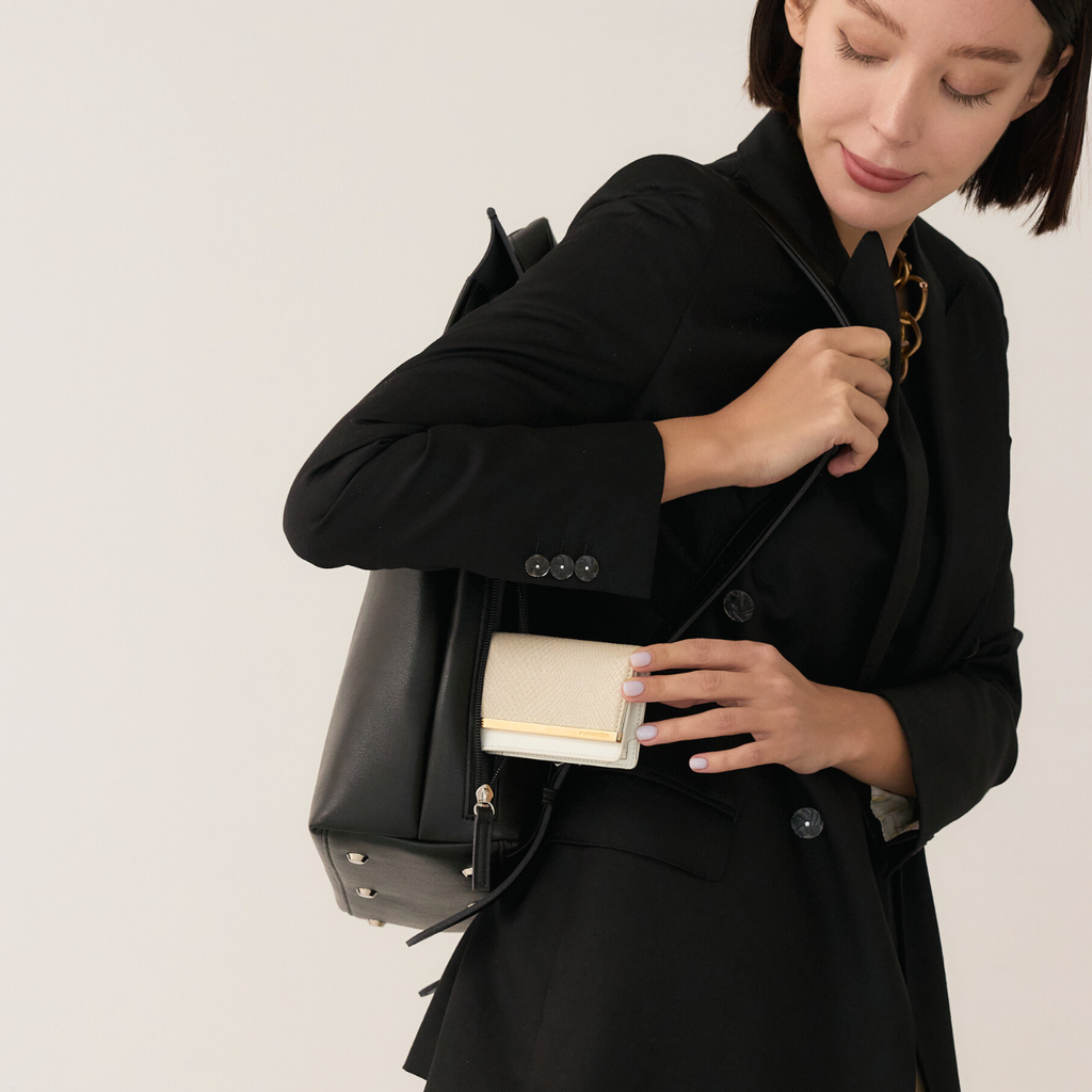 - アイボリー(パイソン柄の型押し)、ベージュ、カーキ、ブラック、ネイビー、スペースシルバー、ウォームグレー、ブルーグリーン