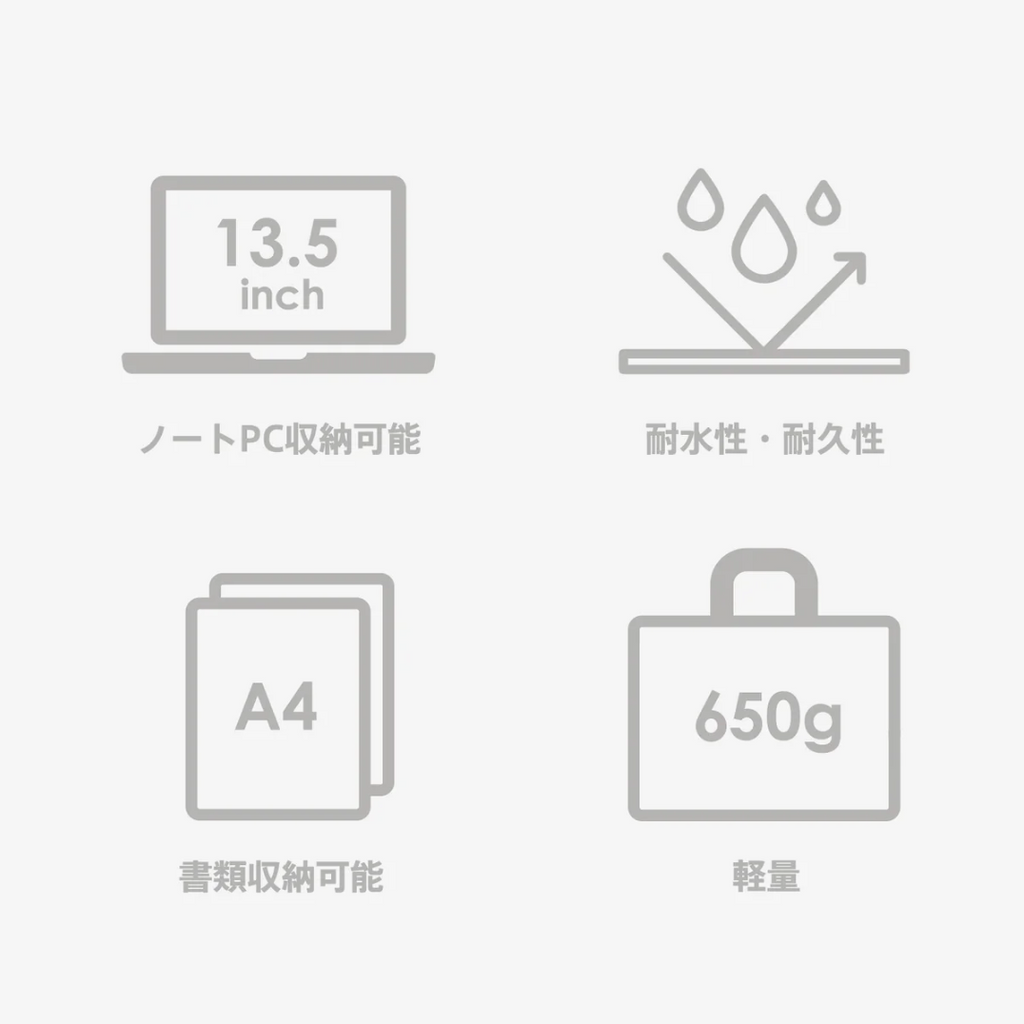 Mサイズ:13.6インチPC(W30.41cm x D21.5cm x H1.13cm)収納可