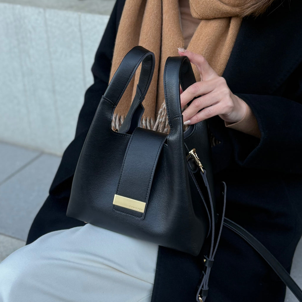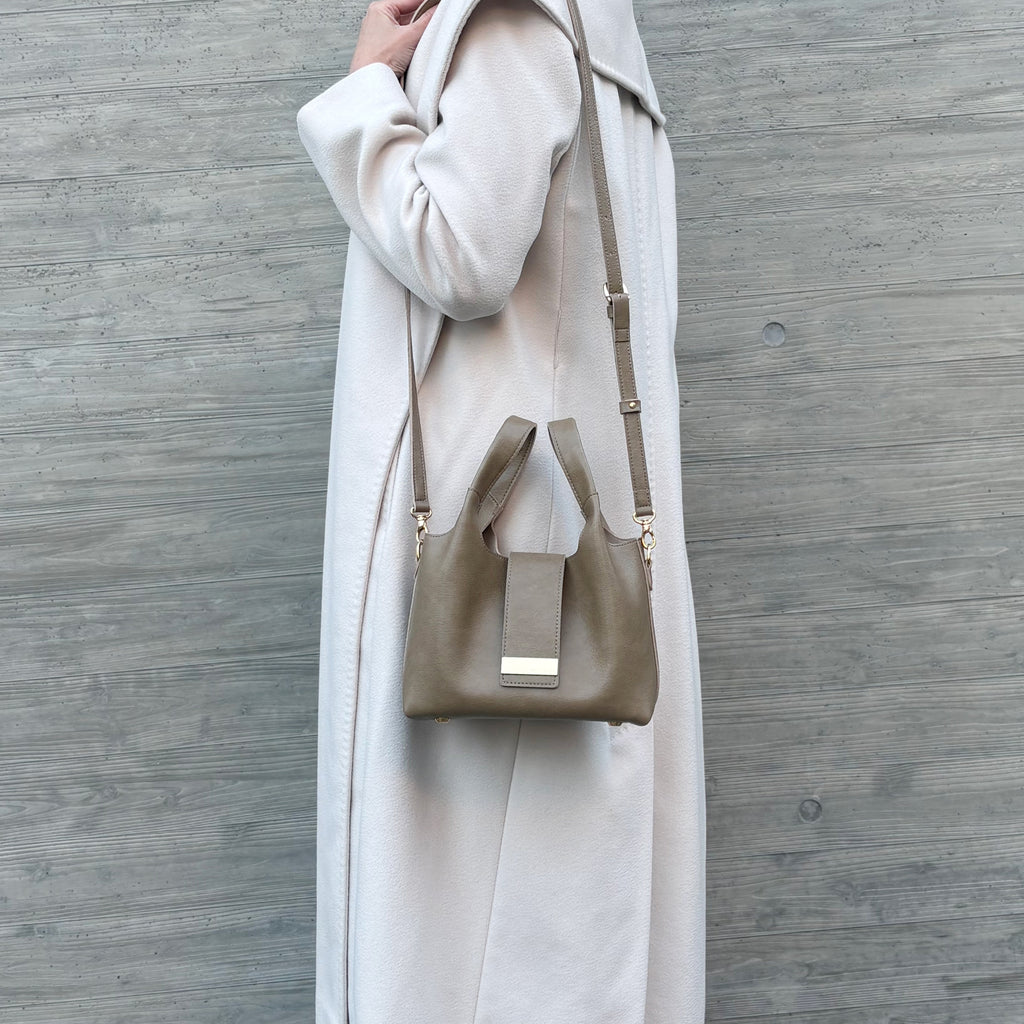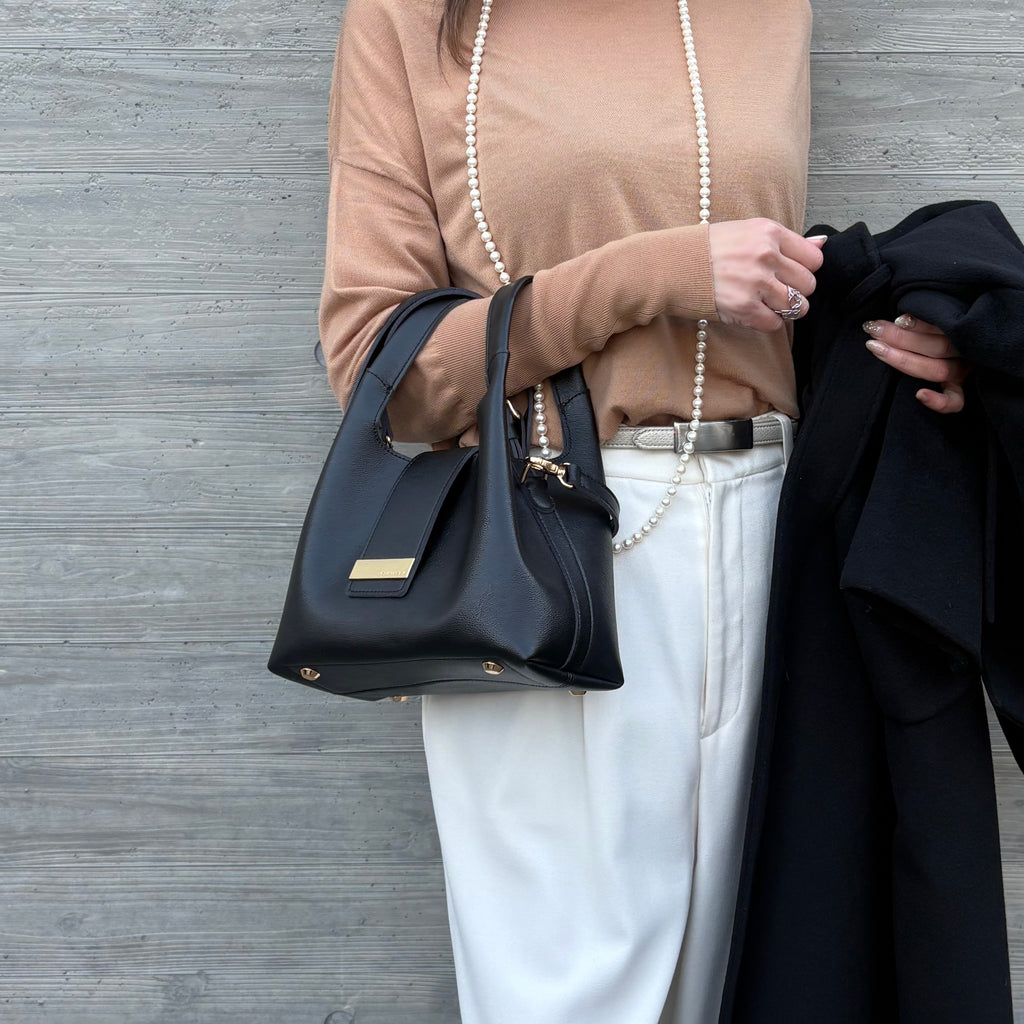 デイリー使いしやすいサイズ感で実用性も兼ね備え、肩にかけて持ち歩けます。
