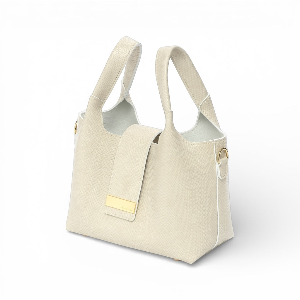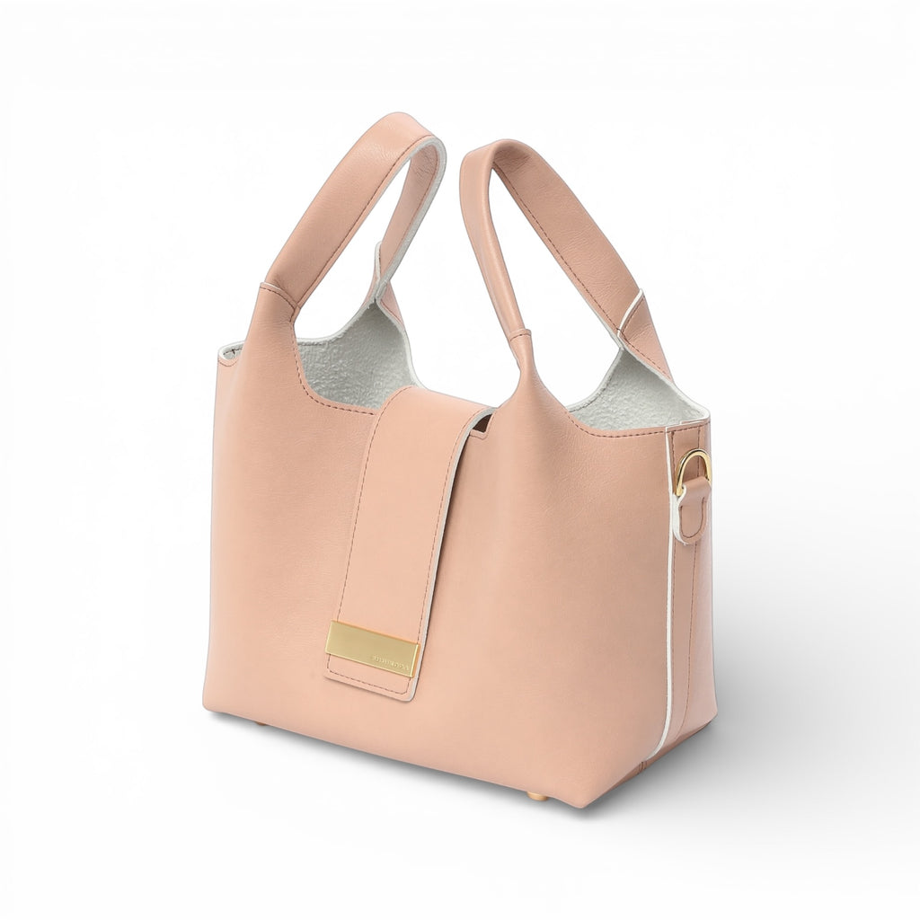 「MARINA」はそんな声にお応えしてお作りした、オンオフどちらのシーンでも使いやすいショルダーストラップ付きのボックストートバッグです。